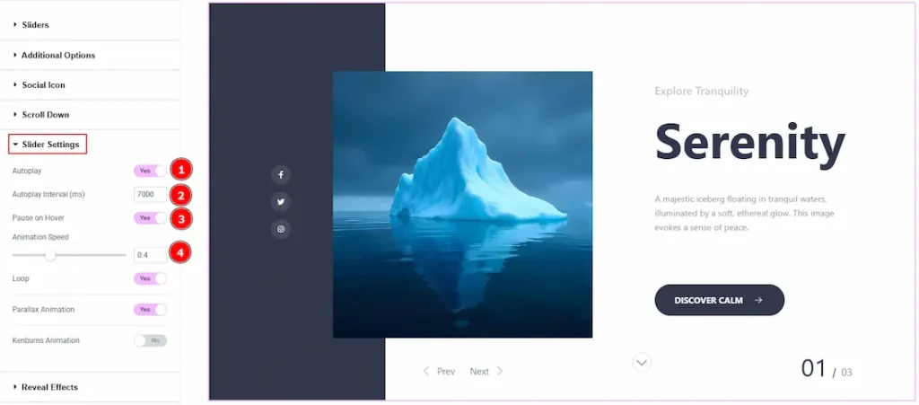 2. Autoplay Interval (ms): This option lets you set the time delay between each slide transition.