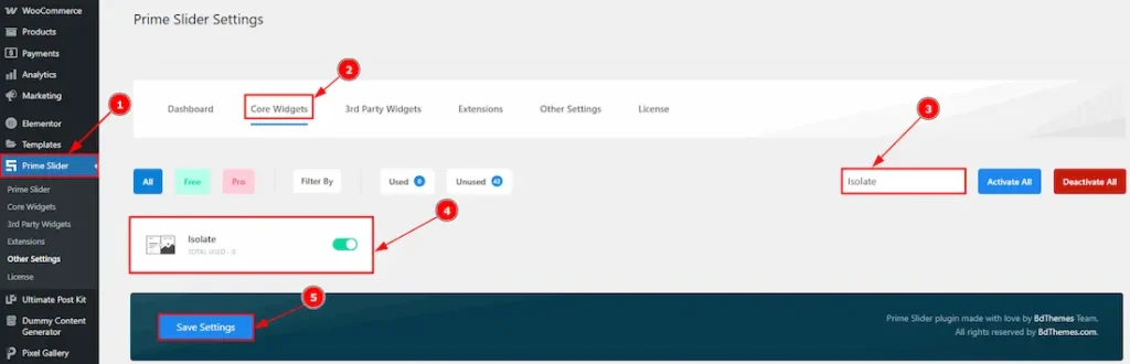 To use the Isolate Slider widget from Prime Slider, first, you have to enable the widget.