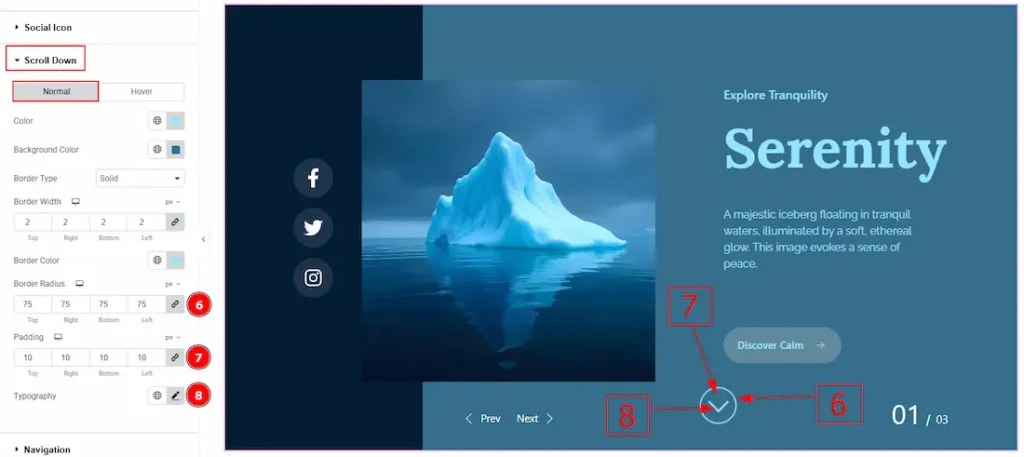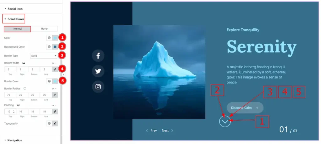 3. Border Type: This option allows you to add various types of borders to the scroll down icon.
