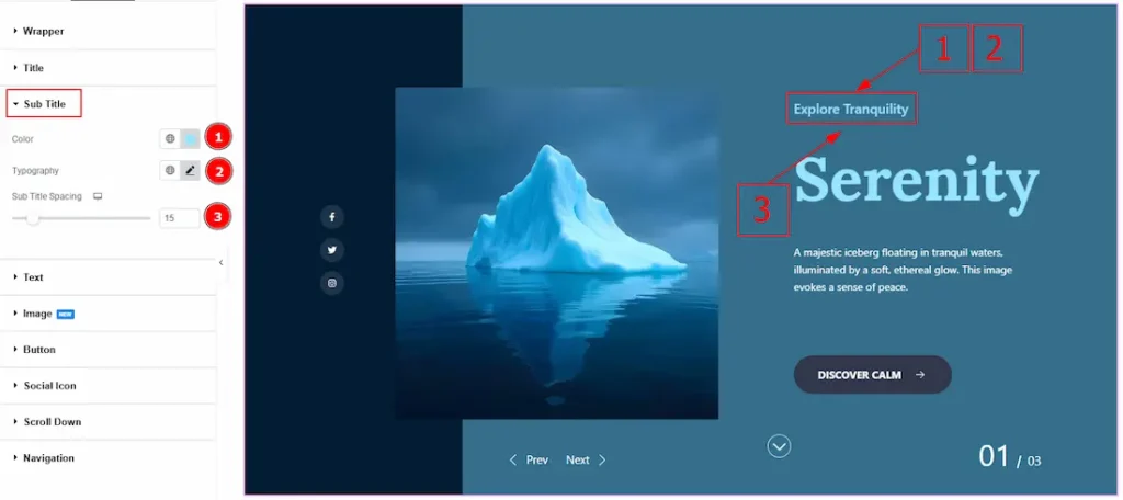 3. Sub Title Spacing: This option allows you to adjust the space between the subtitle and the title.