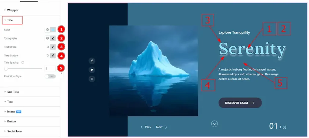 5. Title Spacing: You can adjust the space between the title and the description with this option.
