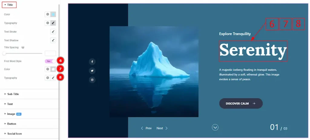 6. First Word Style: Enable this switcher to customize the title’s first word.