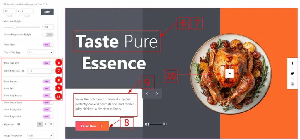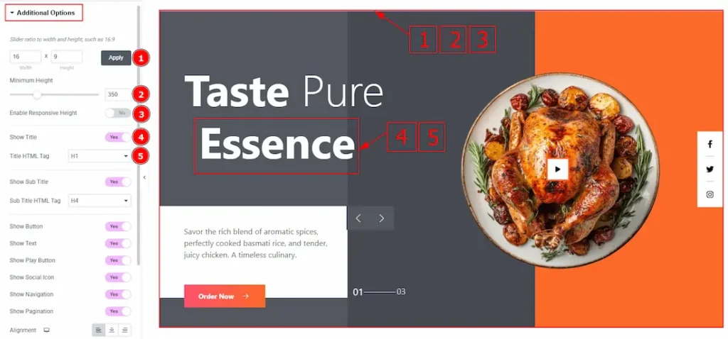 1. Slider Ratio: You can adjust the slider ratio to width & height with this option.