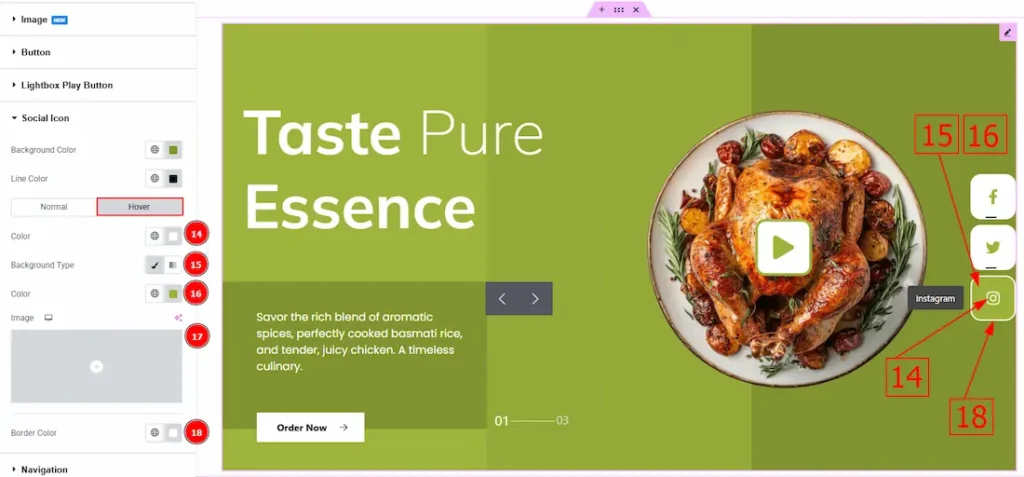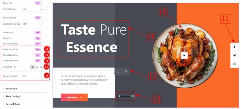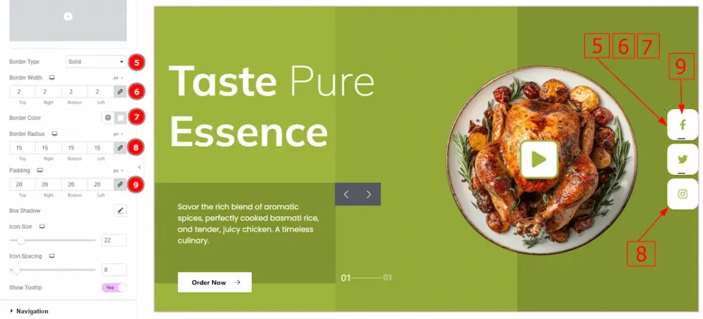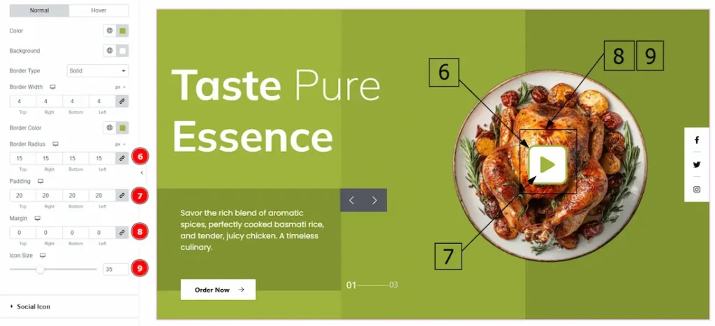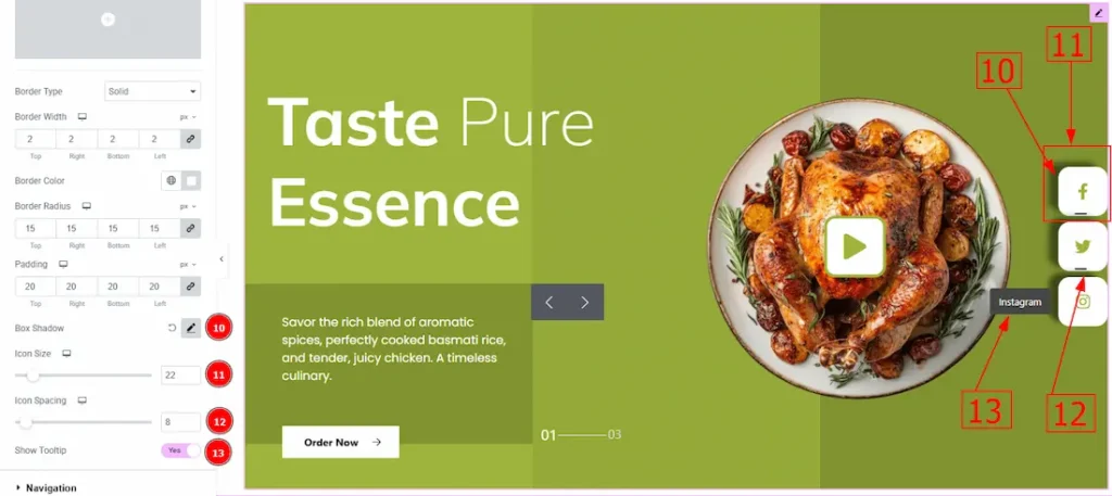 11. Show Social Icon: By enabling this switch, you can make the social icons visible.
