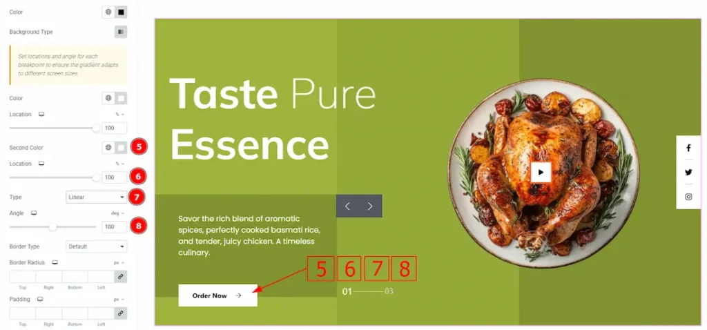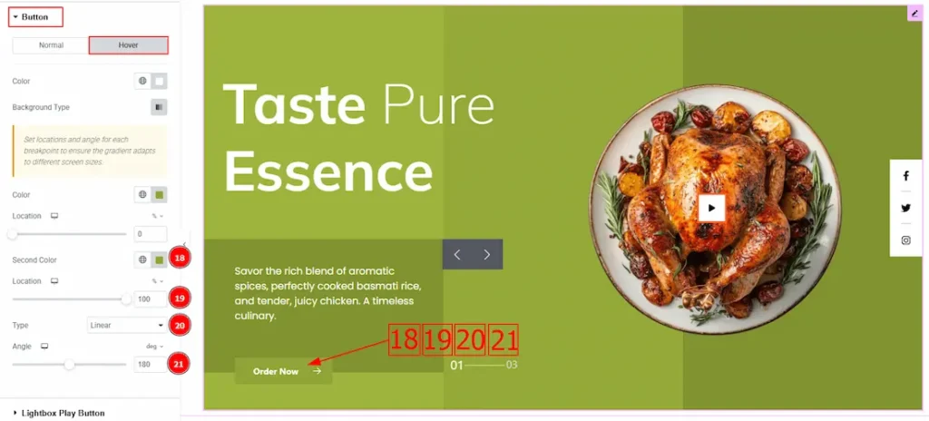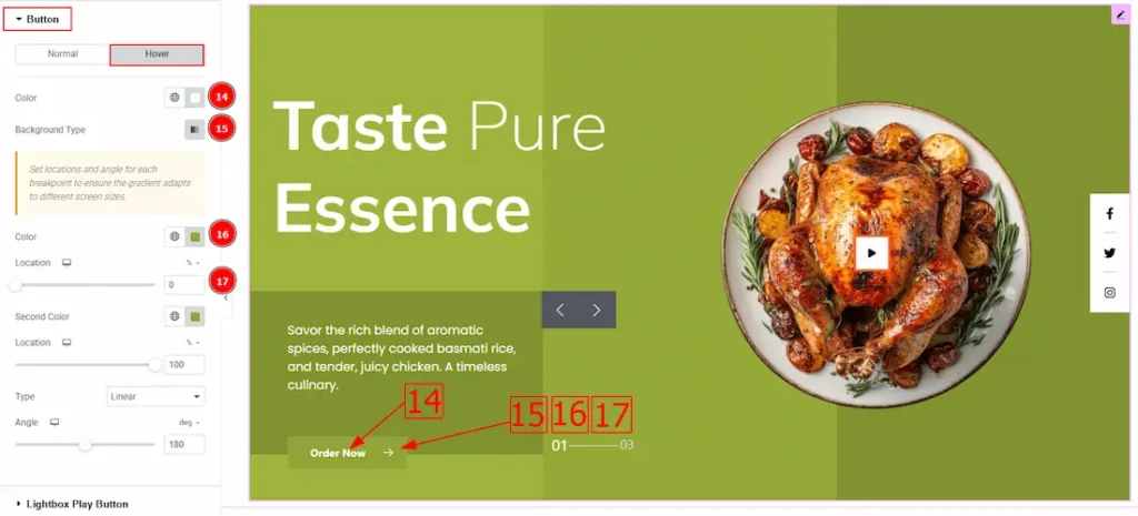 19. Location: This option allows you to adjust the position to fill the second hover color.