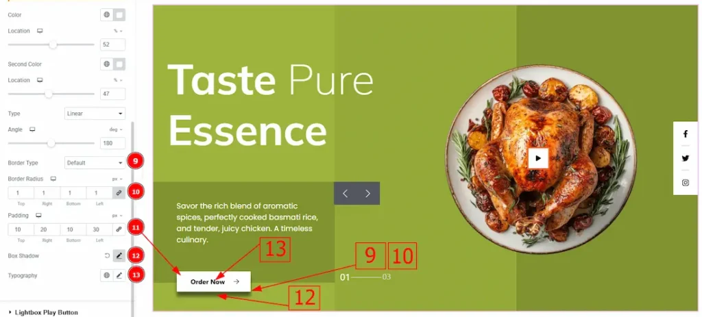3. Border Type: This option allows you to add various types of borders to the lightbox play button.