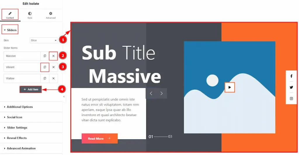 2. Close Item: You can delete the Slider item by clicking the Close icon button.
