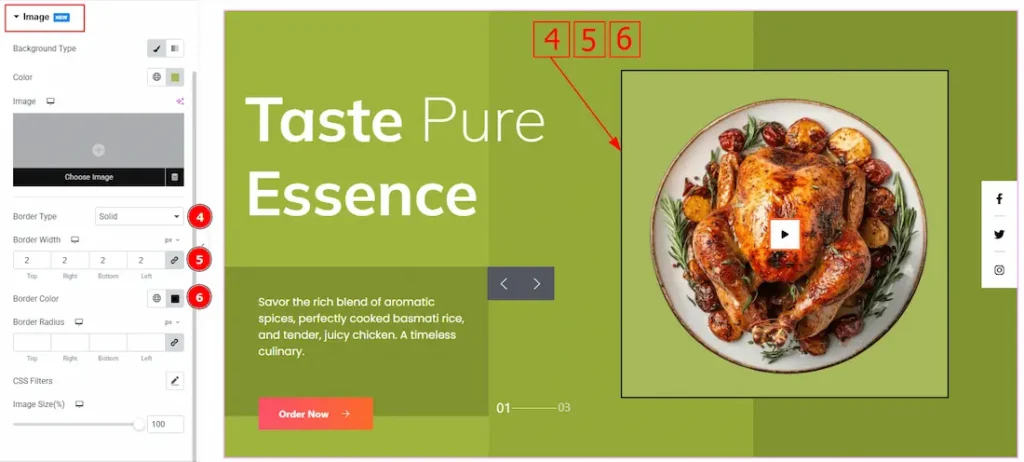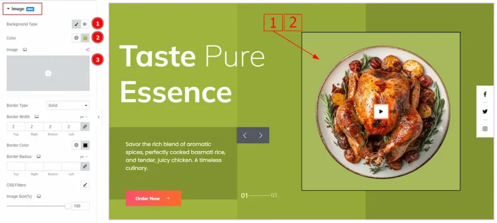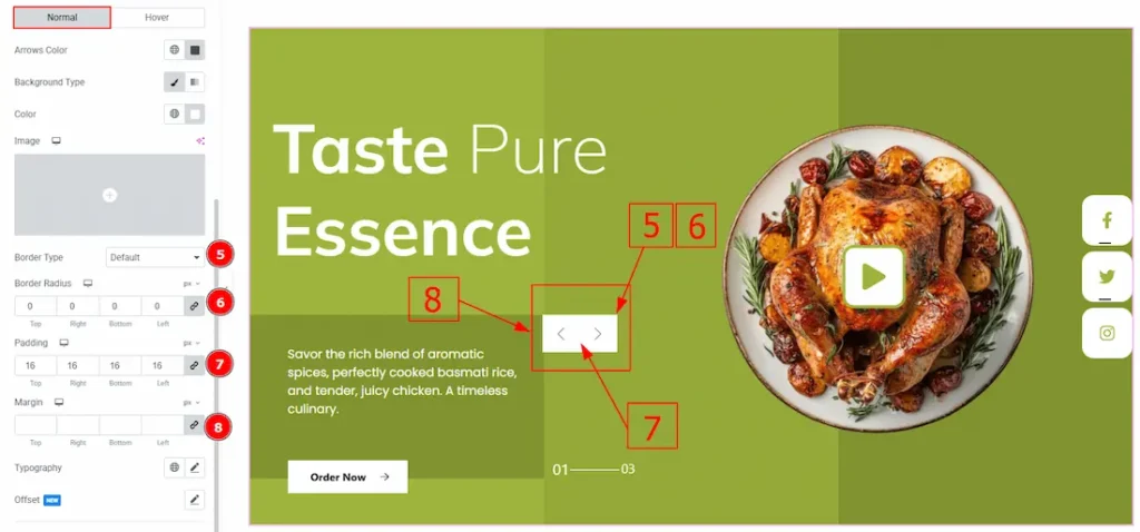 8. Margin: This option allows you to adjust the space & create gaps between elements.