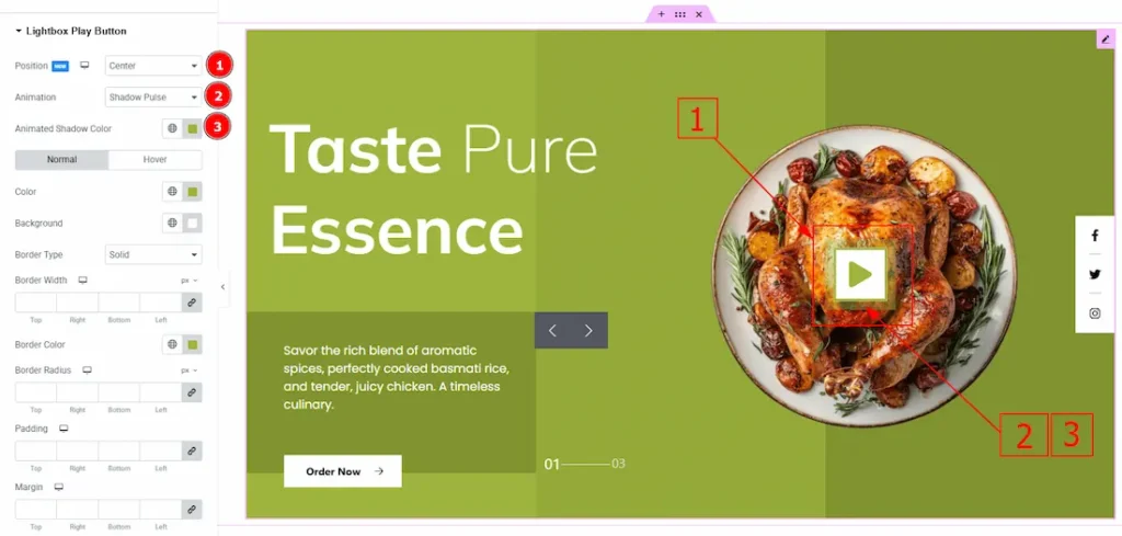8. Margin: This option controls the outer space and gaps of the lightbox play button.