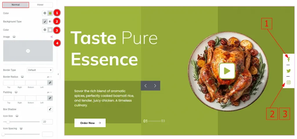 In this Section, we have two tabs. These are Normal & Hover. Let’s start with the Normal Tab –