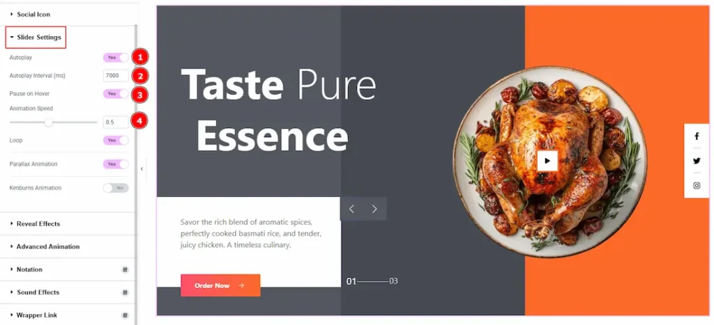 3. Pause on Hover: Enable the switcher to pause autoplay when the user hovers over the slider.