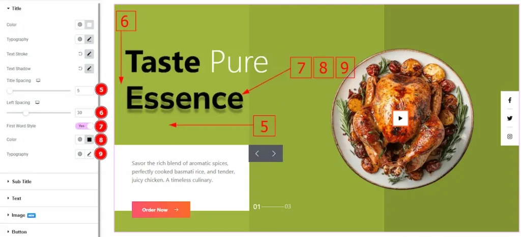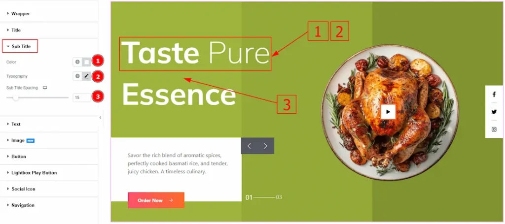 3. Sub Title Spacing: This option allows you to adjust the space between the subtitle and the title.