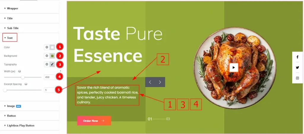 2. Button Text: You can add the button text with this option.3. Button Link: You can add a link to the button with this option.