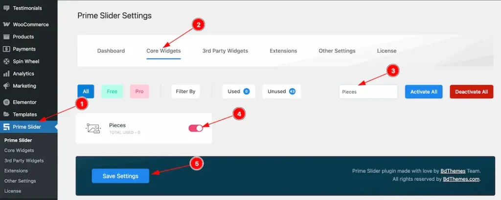 To use the Pieces Slider from Prime Slider, first, you have to enable the widget.