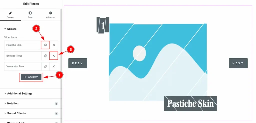 3. Close Item: You can delete the Slider item by clicking the Close icon button.
