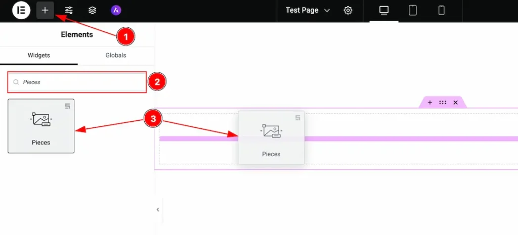 1. Go to the Elementor Editor Page and hit the “+” icon Button.