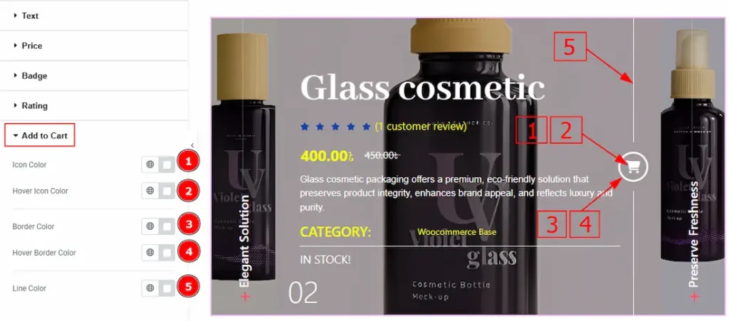 4. Hover Border Color: You can change the add to cart border hover color with this option.