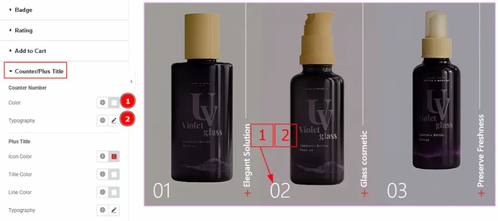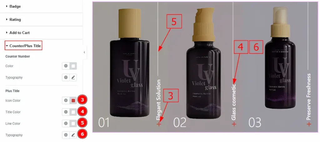 4. Spacing: You can adjust the space and gaps between the badge and the counter number with this option.