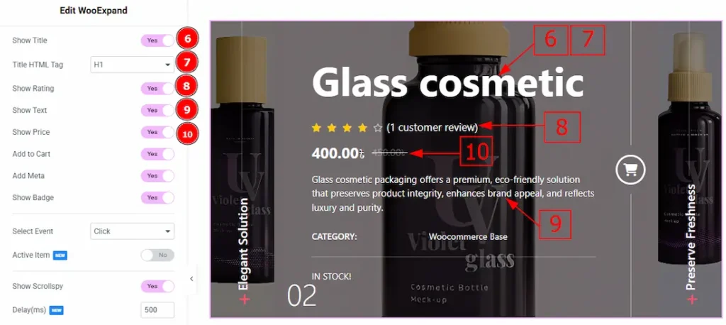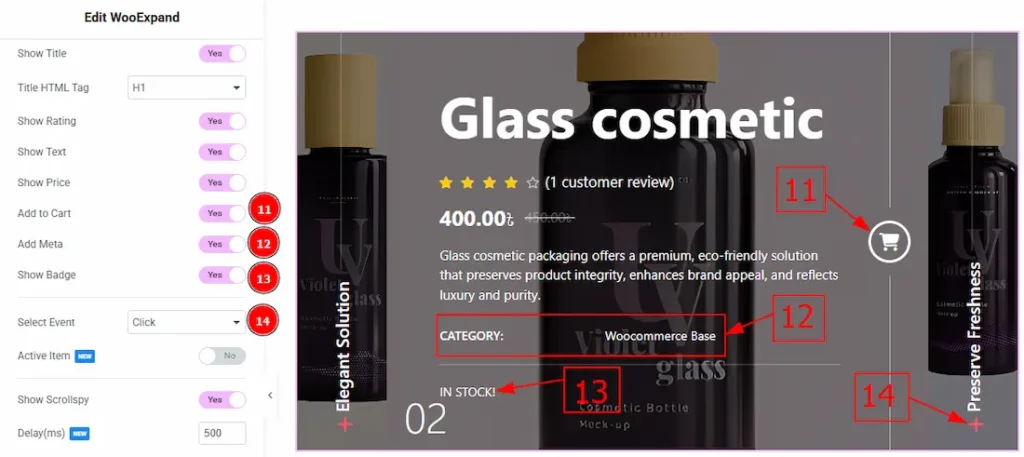 11. Add to Cart: Enable the switcher to show the add to cart button to the audience.