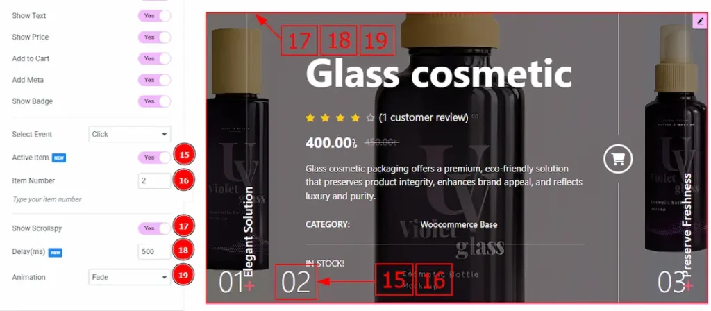 13. Show Badge: Enable the switcher to show the product status to the audience.