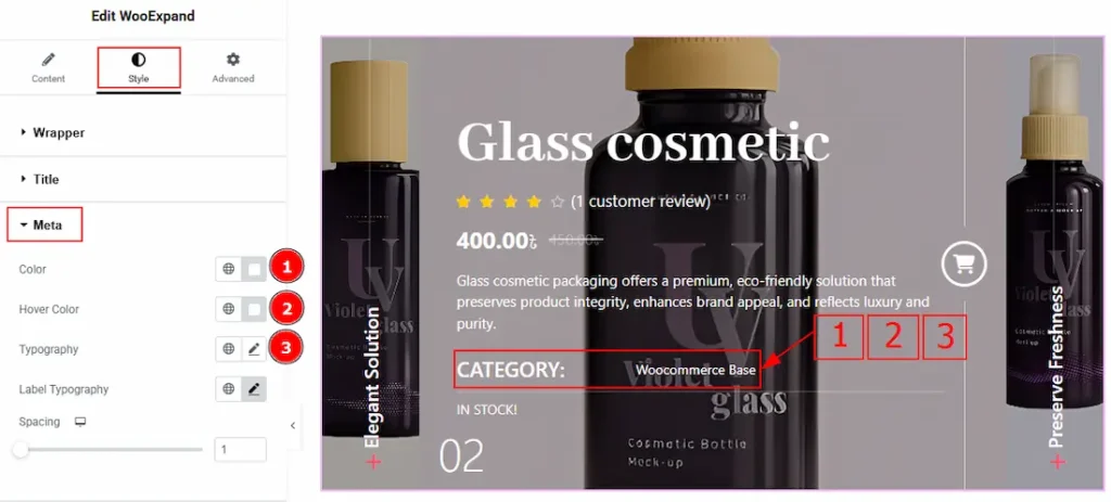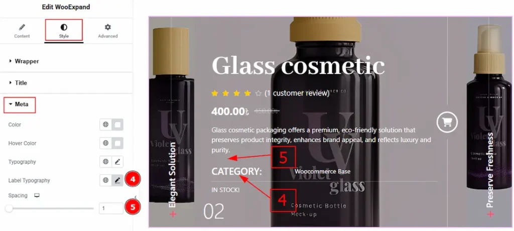 5. Spacing: You can adjust the space and gaps between the meta and the text with this option.