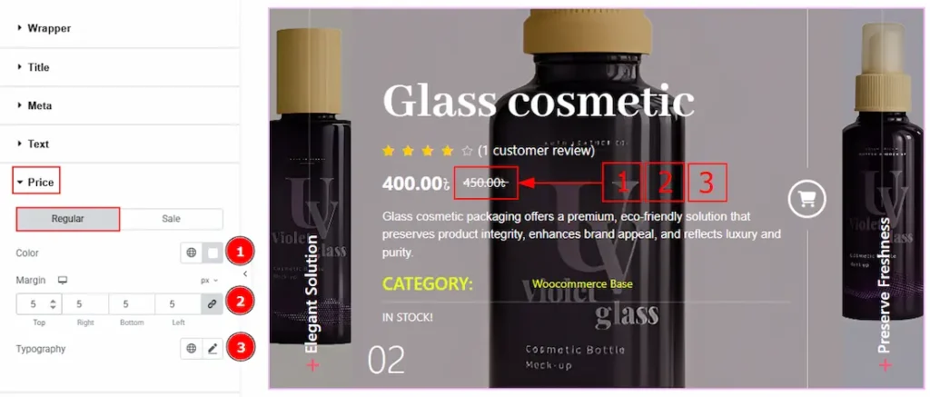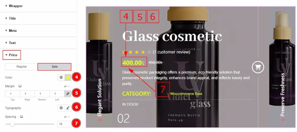 7. Spacing: You can adjust the space between the price and the text with this option.