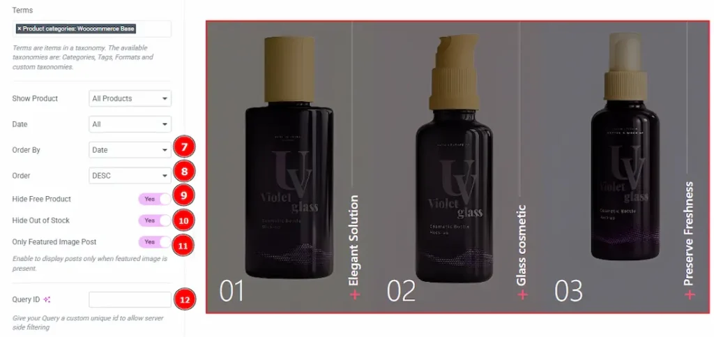 10. Hide Out of Stock: Enable the switcher to hide out-of-stock products from the slide.
