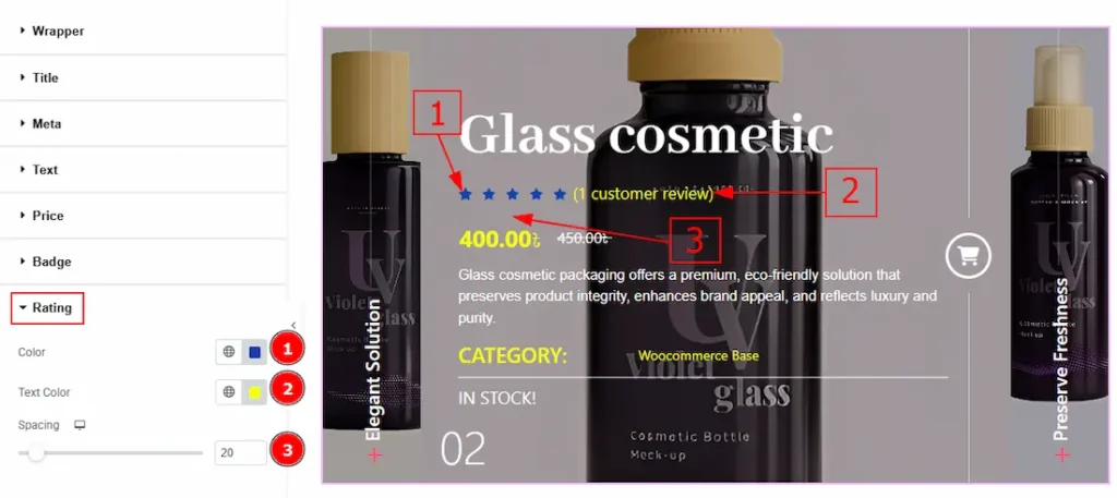 3. Spacing: You can adjust the space between the rating & the price with this option.