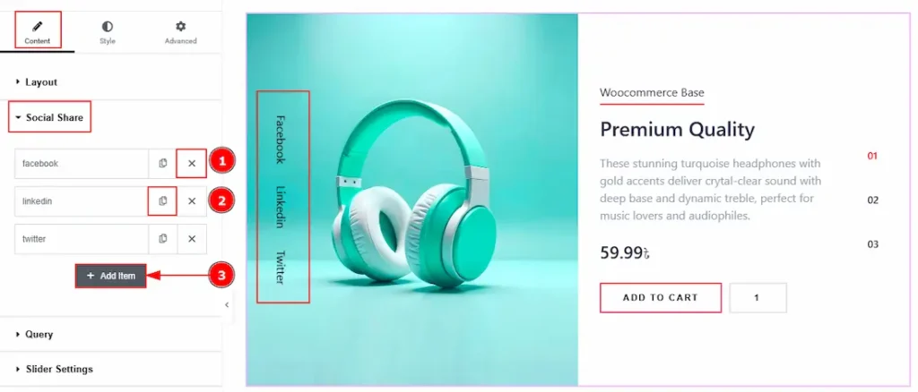 1. Close Item: You can delete the Slider item by clicking the Close icon button.