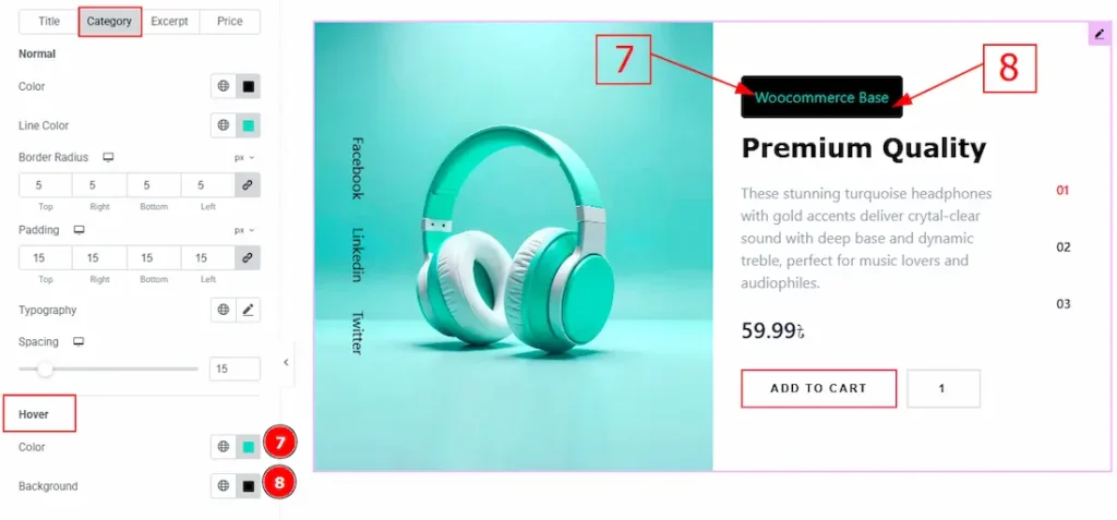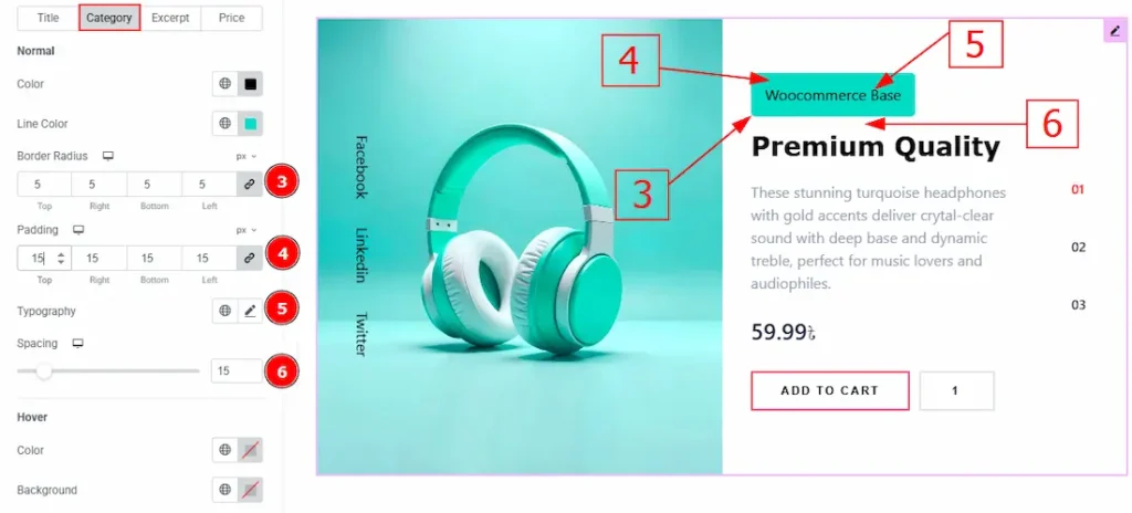 6. Spacing: You can adjust the space between the category and the title with this option.
