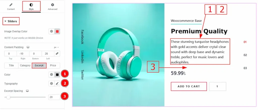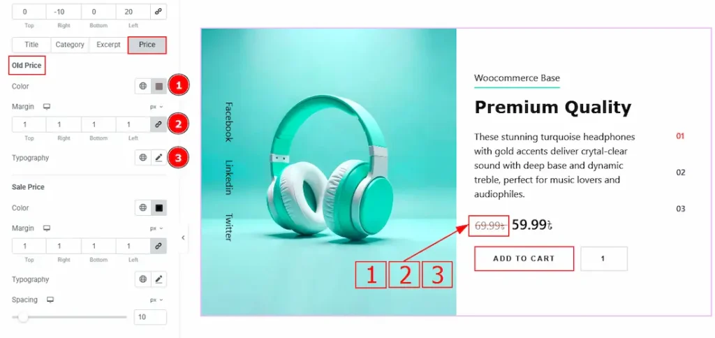 3. Excerpt Spacing: You can adjust the space and gaps between the text and the price with this option.