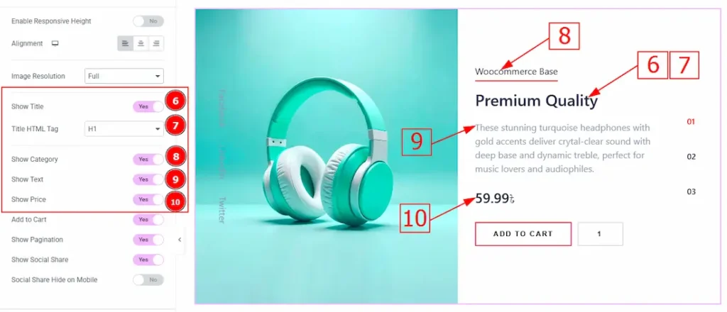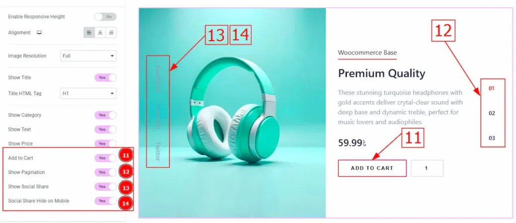 11. Add to Cart: Enable the switcher to show the add to cart button to the audience.