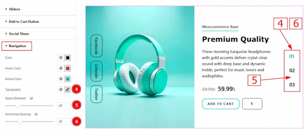 6. Horizontal Spacing: You can move the navigation horizontally with this option.