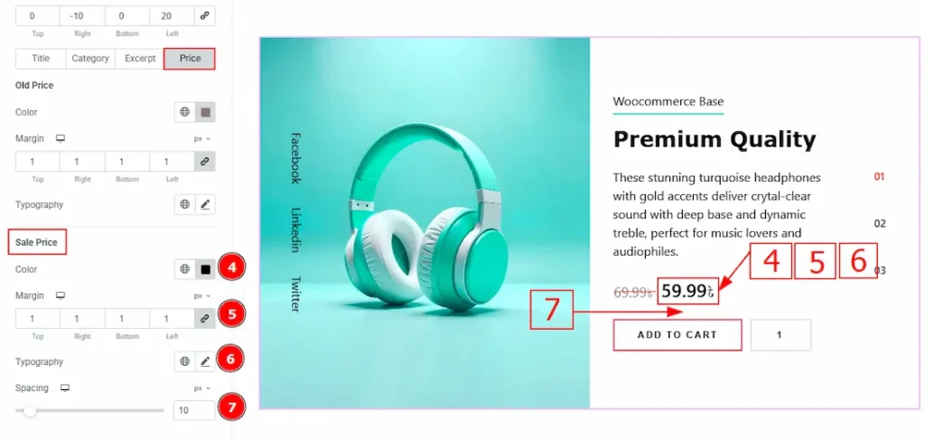 7. Spacing: You can adjust the space between the price and the add to cart button with this option.