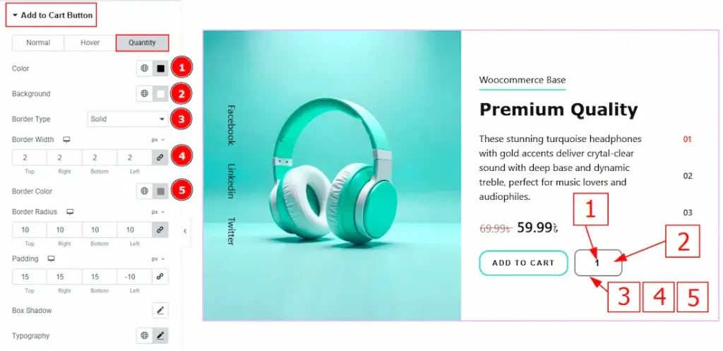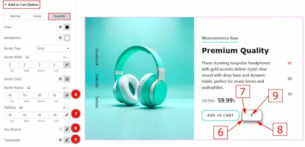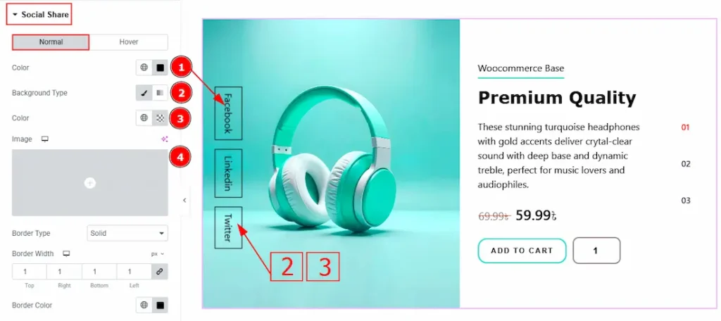 In this Section, we have three tabs. These are Normal, Hover & Quantity. Let’s start with the Normal Tab –