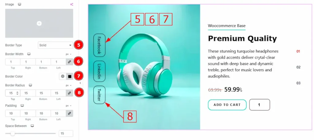 9. Padding: You can adjust the inner space of the social share field with this option.