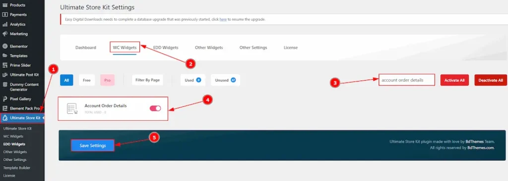 To use the Account Order Details widget by Ultimate Store Kit, first, you have to enable the widget.