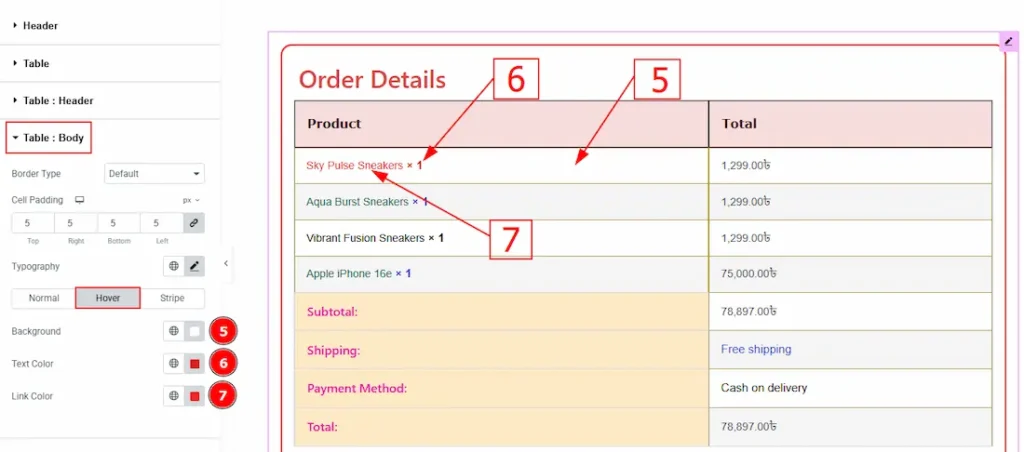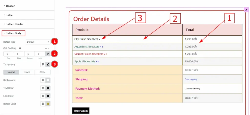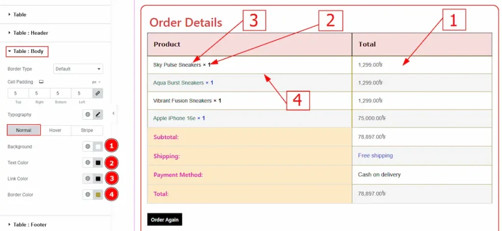 In this section, we have three tabs. These are Normal, Hover & Stripe. Let’s start with the Normal Tab first – 1. Background: You can change the background color with this option.
