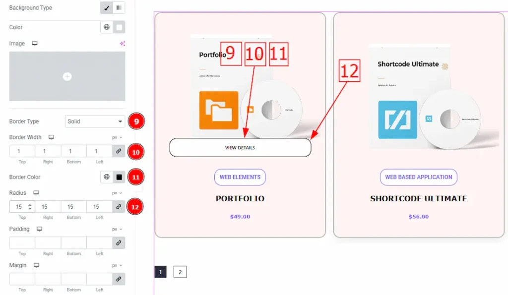 8. Border Radius: The Border Radius controls the roundness of the border.