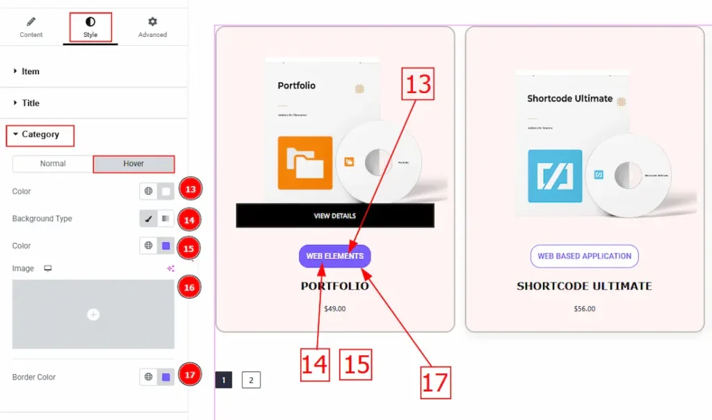 13. Color: This option allows you to change the category hover color.