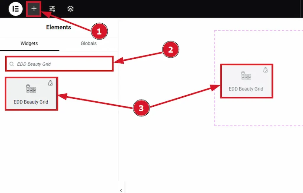 3. Search the EDD Beauty Grid Widget Name.