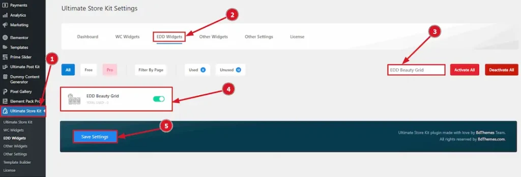 To use the EDD Beauty Grid by Ultimate Store Kit, first, you have to enable the widget.