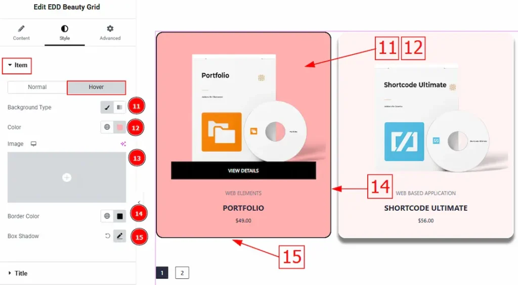 15. Box Shadow: You can change the box shadow hover color by using this option.
