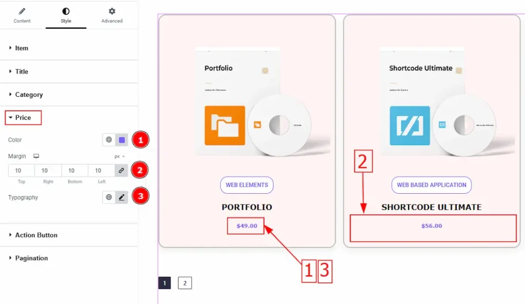 1. Color: This option allows you to change the price text color.