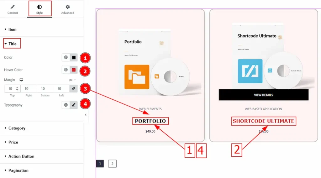 2. Hover Color: You can change your title color by this option.