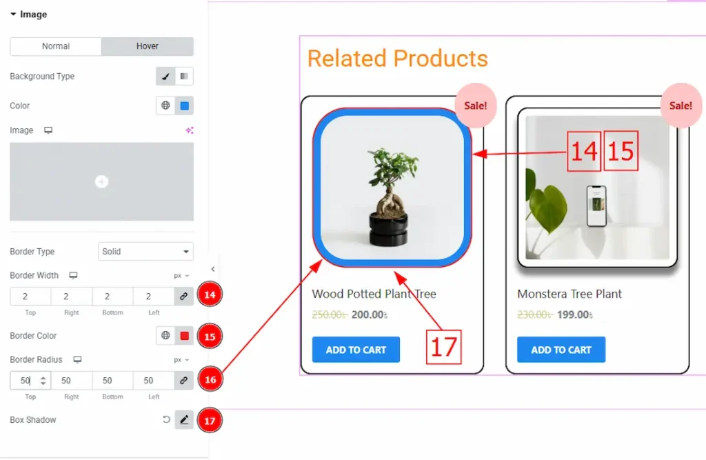 17. Box Shadow: You can add a hover box shadow & customize the shadow with this option.