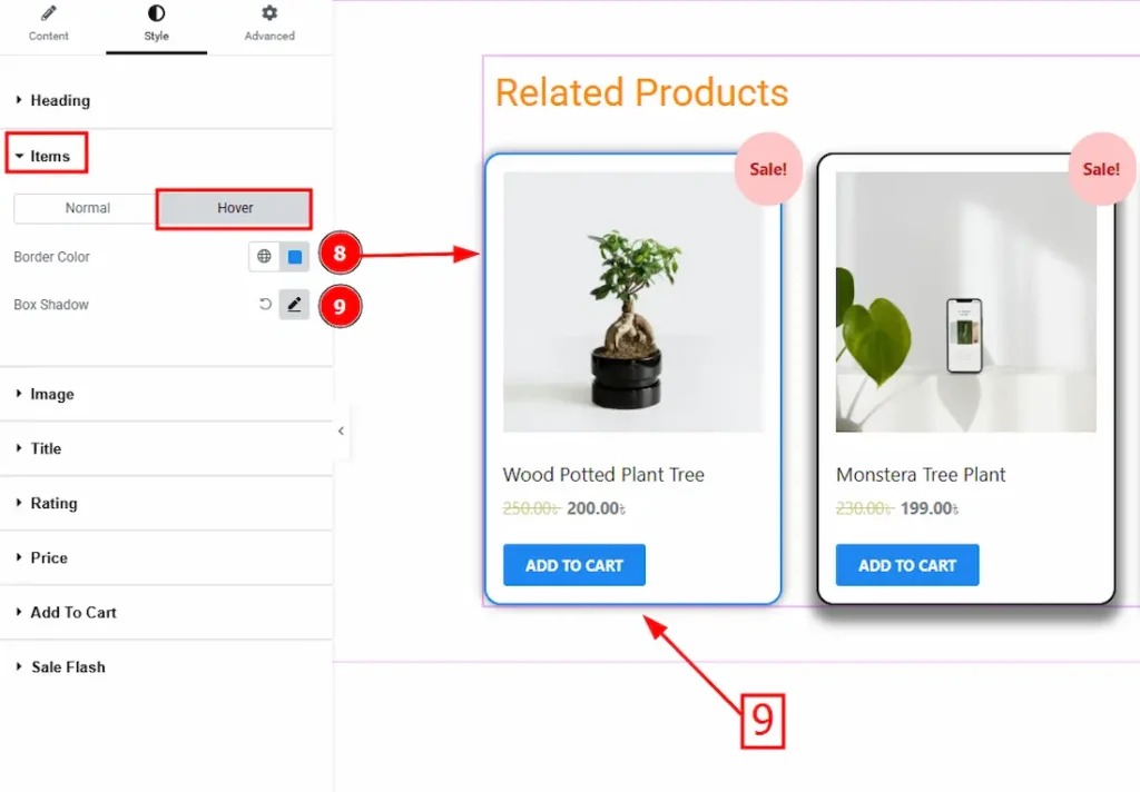 2. Box Shadow: You can make changes to the hover box shadow by using this option.