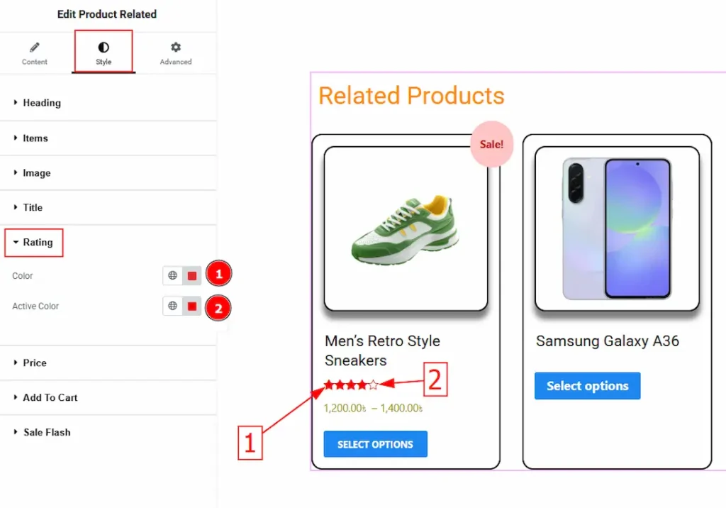 1. Sale Flash: Enable the switcher to show the sale flash with this option.