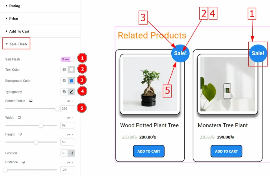 8. Position: This option allows you to change the sale flash icon position to left or right.