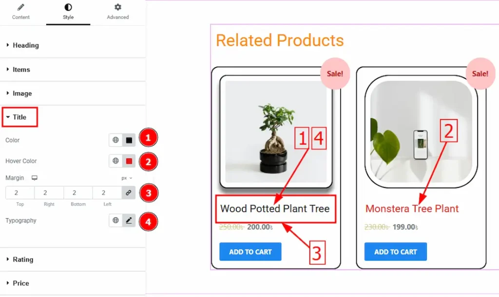 4. Typography: Change the title’s font family, size, weight, transform, style, decoration, line height, letter spacing & word spacing from here.